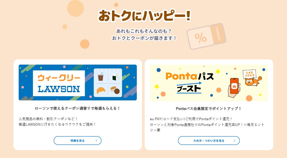 | おトクにハッピー | ローソンや提携店でのクーポン、ポイント還元 |